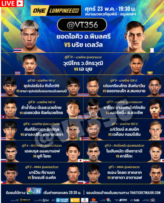 เว็บมวย One ที่เปิดให้แทงมวย One Championship แบบสดๆ ครบทุกคู่ แทงได้ทุกคู่ ราคาเริ่มต้นที่ 10 บาทต่อคู่ เว็บไซต์อันดับ 1 ที่มั่นคงบริการรวดเร็วทันใจ การเงินชัวร์ 100% อย่ารอช้าคลิกแอดไลน์ไปสมัครเลย >> @VT356