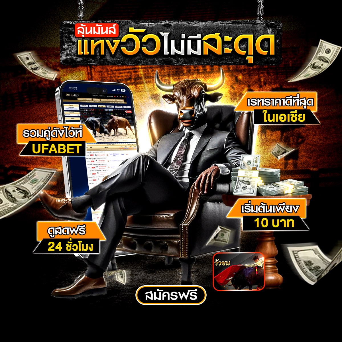 เว็บวัวชนออนไลน์ คนรักษ์วัว สำหรับคนชื่นชอบกีฬาชนวัว เปิดให้บริการทุกรูปแบบ ราคาไก่ชน โปรแกรมวัวชน ไลฟ์สดวัวชนเงินล้าน พร้อมบริการ 24 ชม.