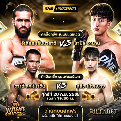 รวมทุกศึกดัง ONE Championship ครบทุกไฟต์ ทั้ง แทงมวยเดี่ยว มวยสเต็ป มวยสด เล่นง่าย จ่ายจริง เหมาะกับคอมวยที่อยากเล่นแบบครบจบในเว็บเดียว